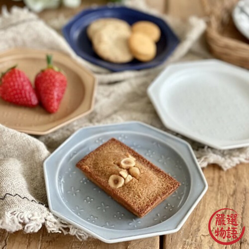 日本製美濃燒小花浮雕八角盤