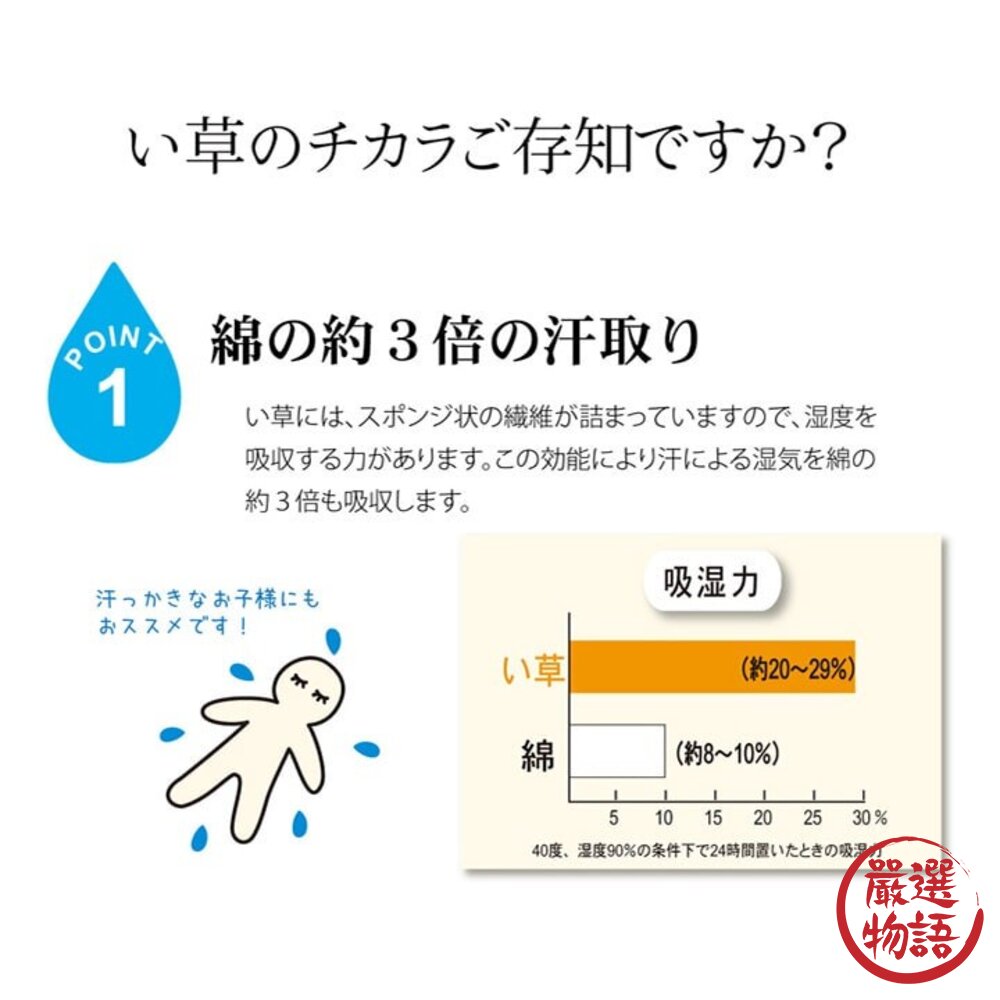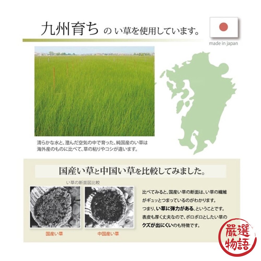 使用熊本縣八代燈心草(又稱蘭草)製作,燈心草可以淨化空氣,