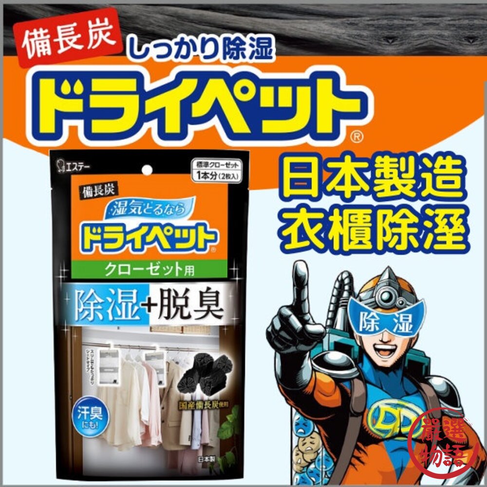 商品名稱:日本製 衣櫃吊掛式除溼 活性碳 除溼 脫臭劑 衣櫥除臭 室內除濕 消除異味 備長炭 一包兩入
