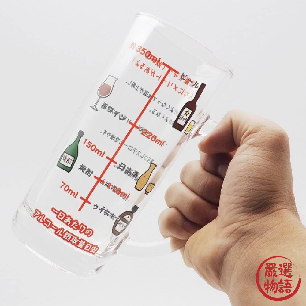 商品名稱:日本製刻度啤酒杯 適量飲酒 清酒 紅酒 威士忌 啤酒 玻璃杯 酒杯 水杯 每日飲酒提醒 父親節禮物