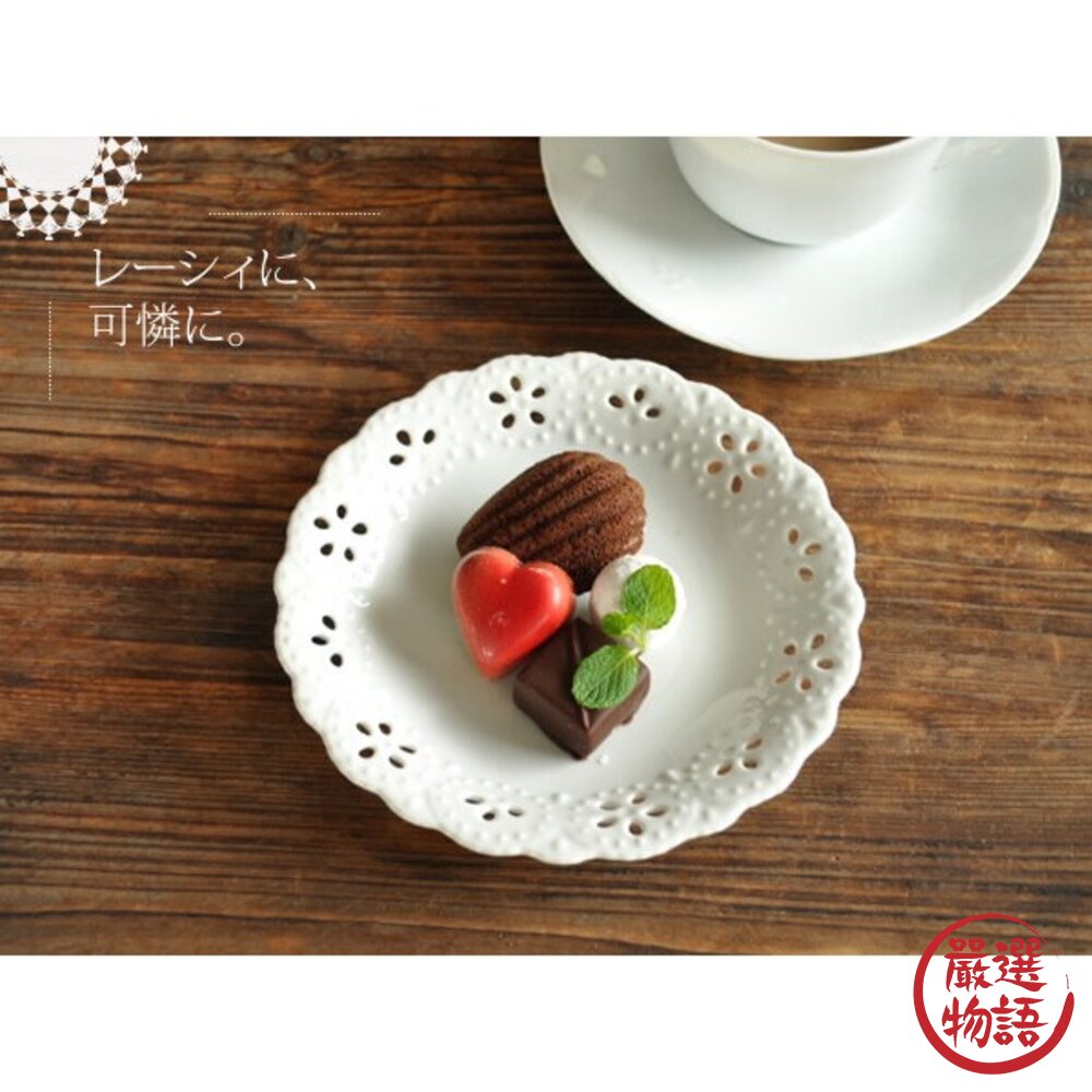 商品名稱:日本製 美濃燒蕾絲裸空點心盤 白瓷 餅乾 蛋糕 水果 白色 下午茶 網美專用 甜點 ins風