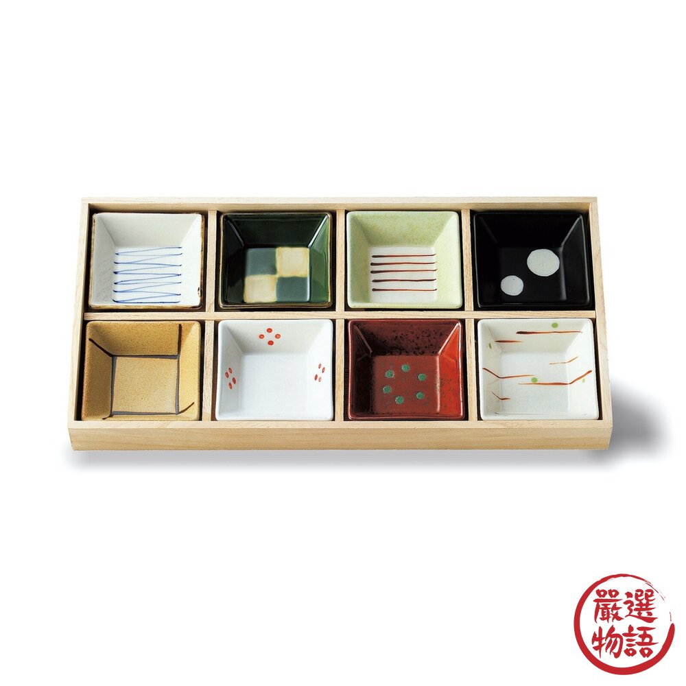 商品名稱:日本製 美濃燒手繪小碟盤禮盒 八入 入厝禮 祝賀禮 小碟子 菜盤 餐具 廚具 醬油碟 小菜盤