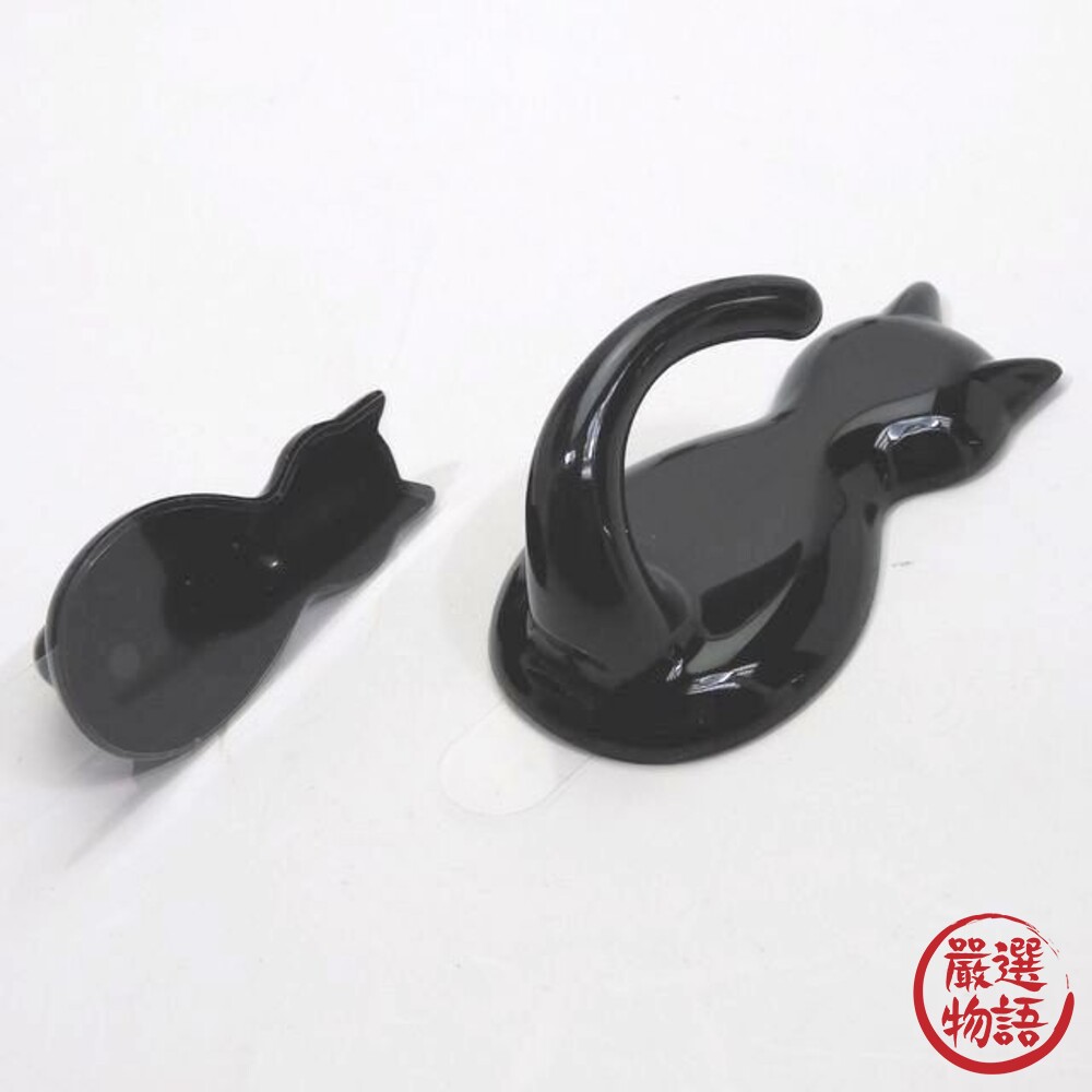 商品名稱:貓咪黏式掛勾 貓尾掛勾 免鑽牆 一組兩入 貓奴 鑰匙 掛鉤 收納掛勾 黑貓 貓咪 廚房收納