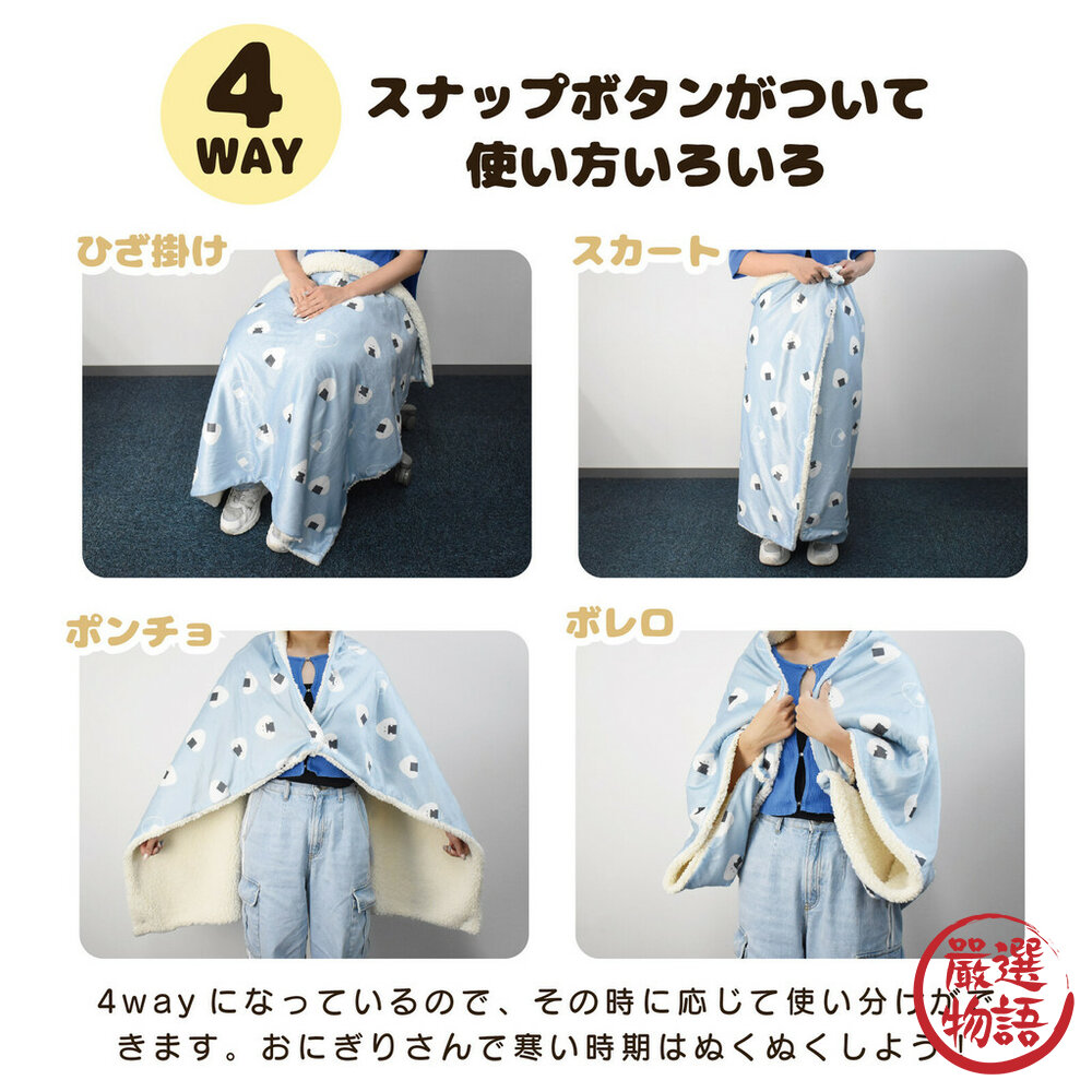 商品名稱:飯糰4way毯子 毛毯披肩 毛毯 保暖毯 毯子 披肩 午睡被 被子 披風毯子 藍色 粉色