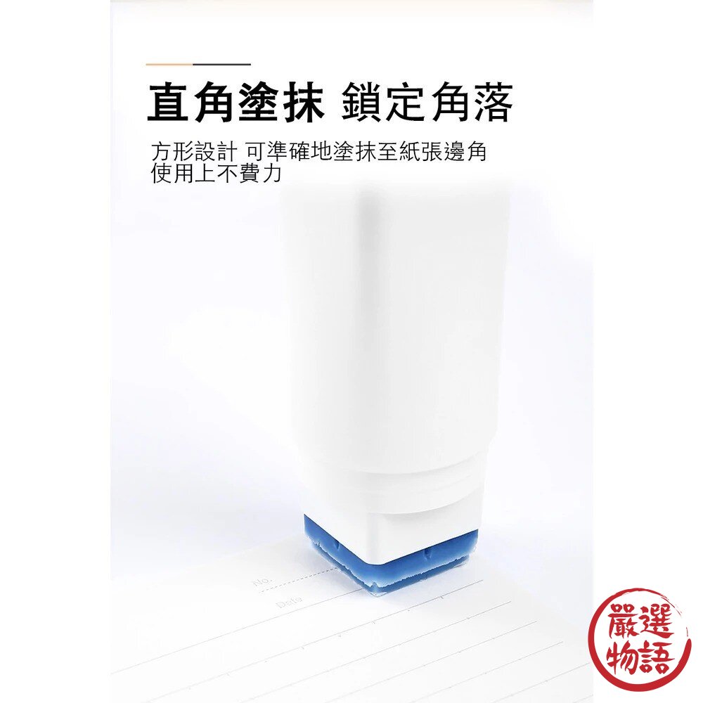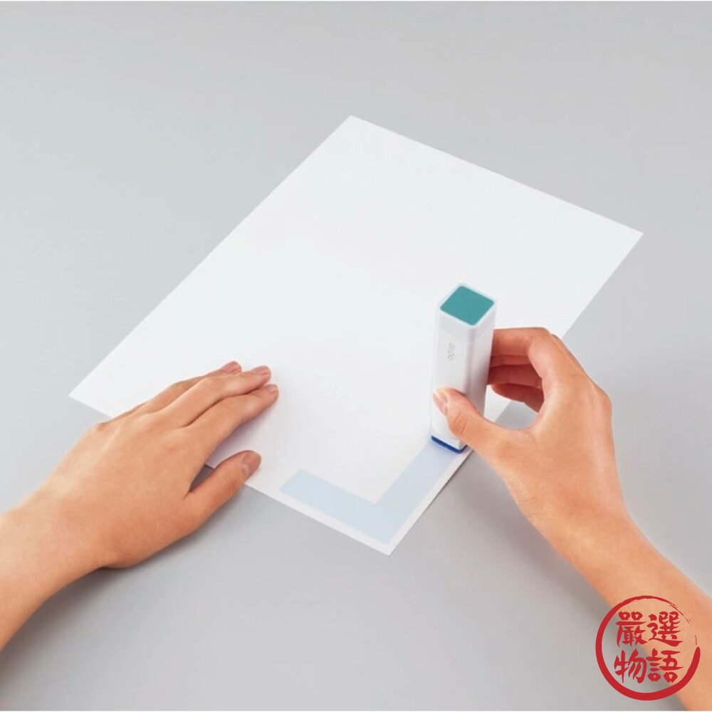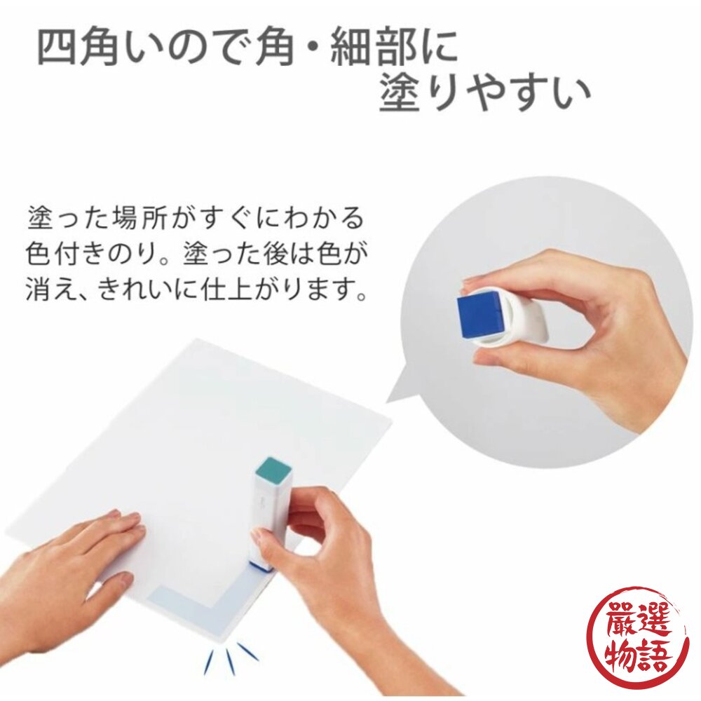 不同於傳統圓柱形口紅膠,方形膠體可輕鬆塗抹紙張邊角,讓黏貼更精準!
