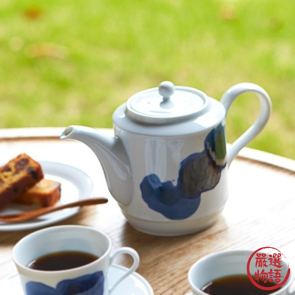 🍵 優雅線條設計:壺身線條流暢,搭配光澤感白磁與深藍漸層釉色,展現簡約高級感。