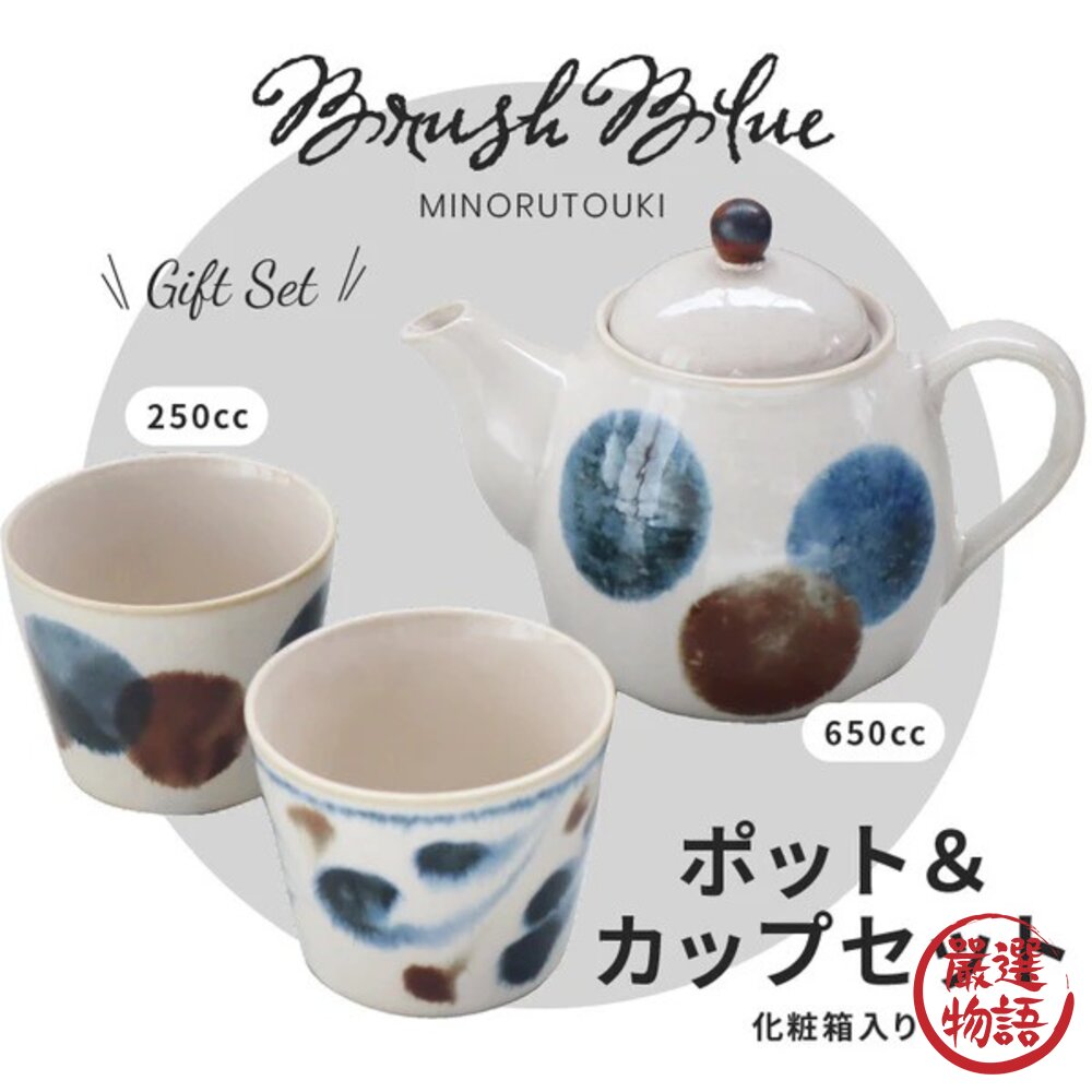 日本製 筆青 陶瓷茶壺 茶杯 禮盒組 陶瓷茶杯 泡茶壺 入厝禮物 新家禮物 陶瓷杯 杯子 茶壺 美濃燒 日本進口-圖片-2