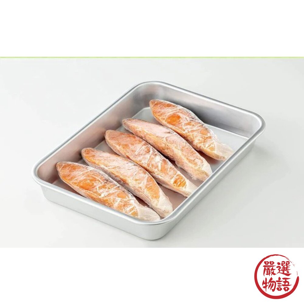 ● 鋁製托盤具有散熱特性,在快速冷凍、解凍表現優異,可用於食材解凍、當退冰盤使用,也可用於急速冷凍保鮮食材使用。