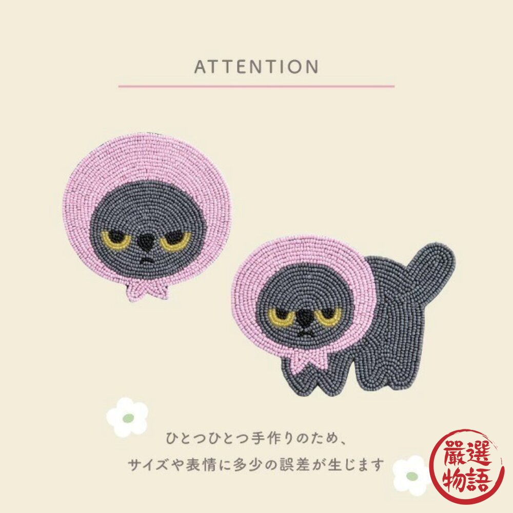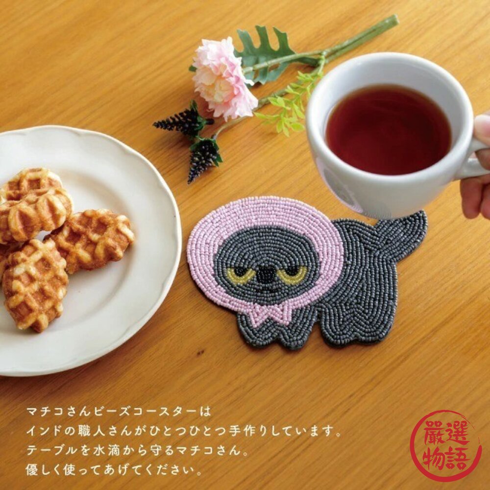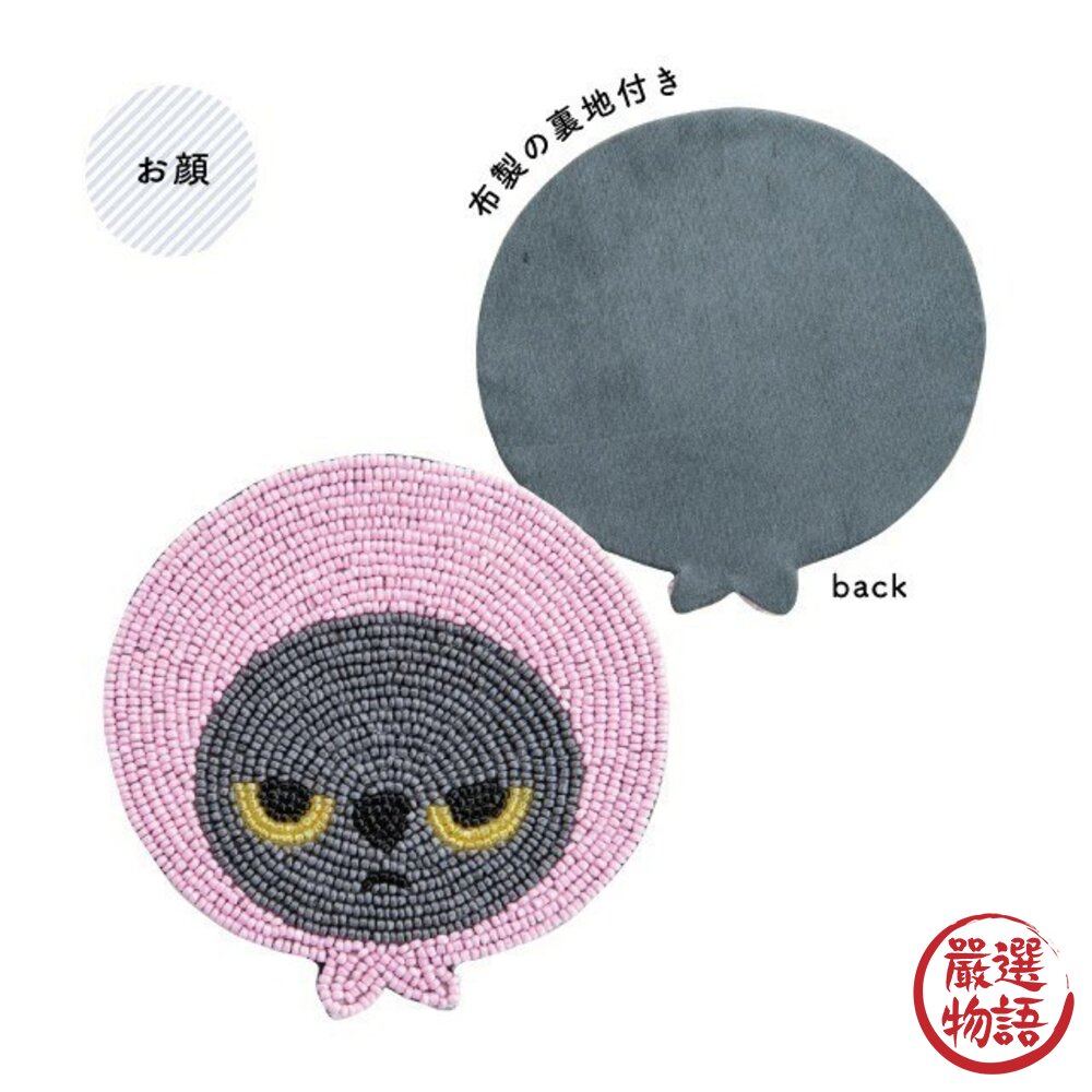商品名稱:日本 憤怒的真知子 粉紅頭巾貓咪 小黑貓 串珠杯墊 吸水 隔熱 杯墊 吸水墊 Machiko 飲料杯墊 日本進口