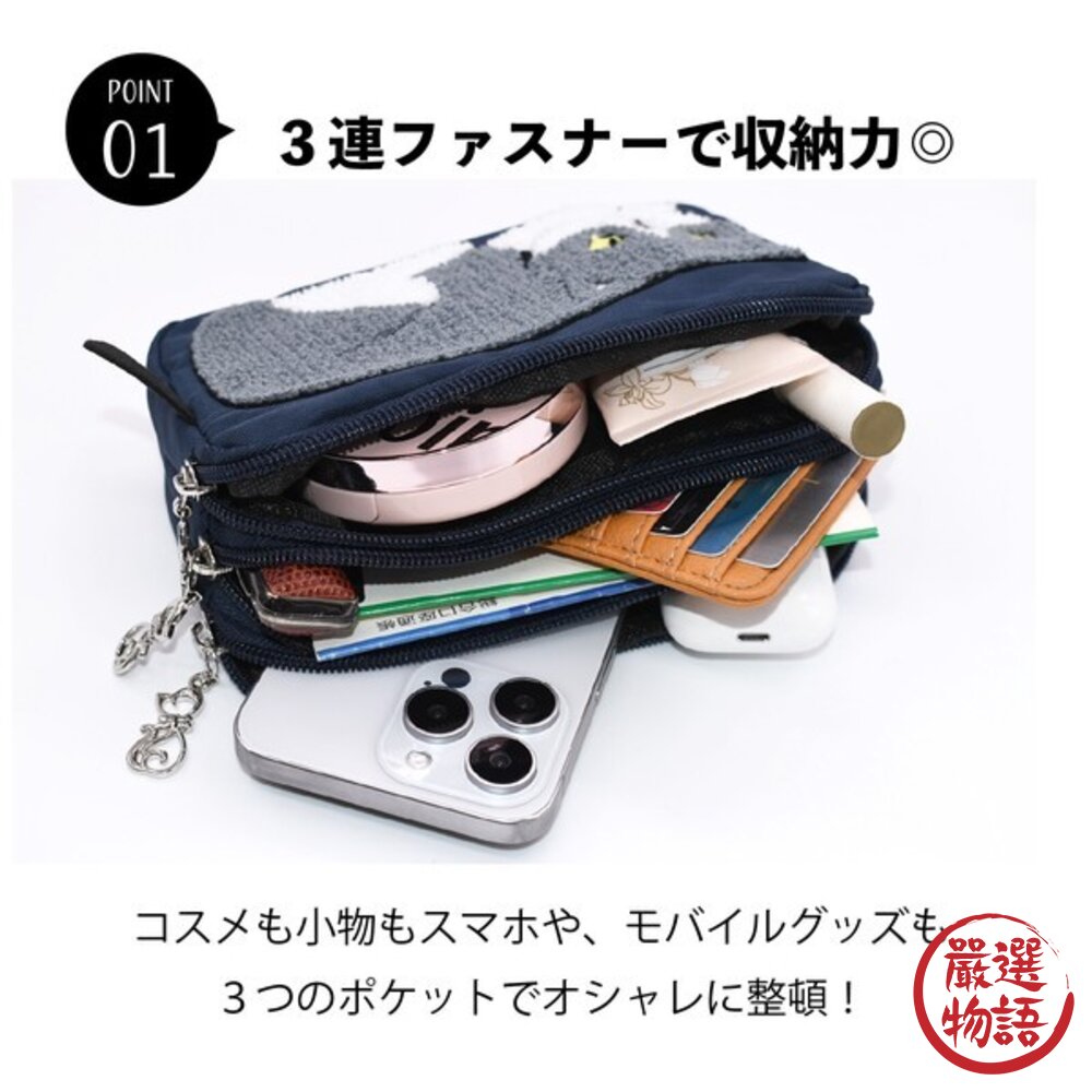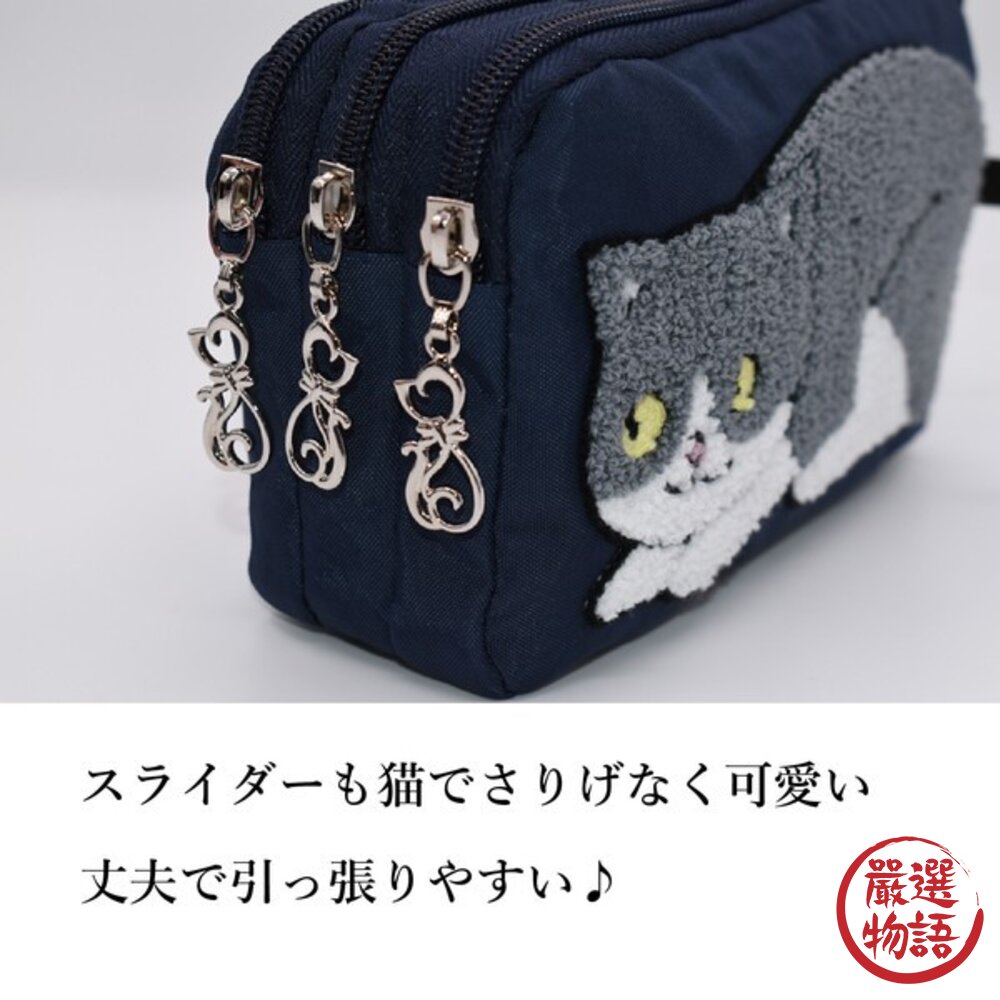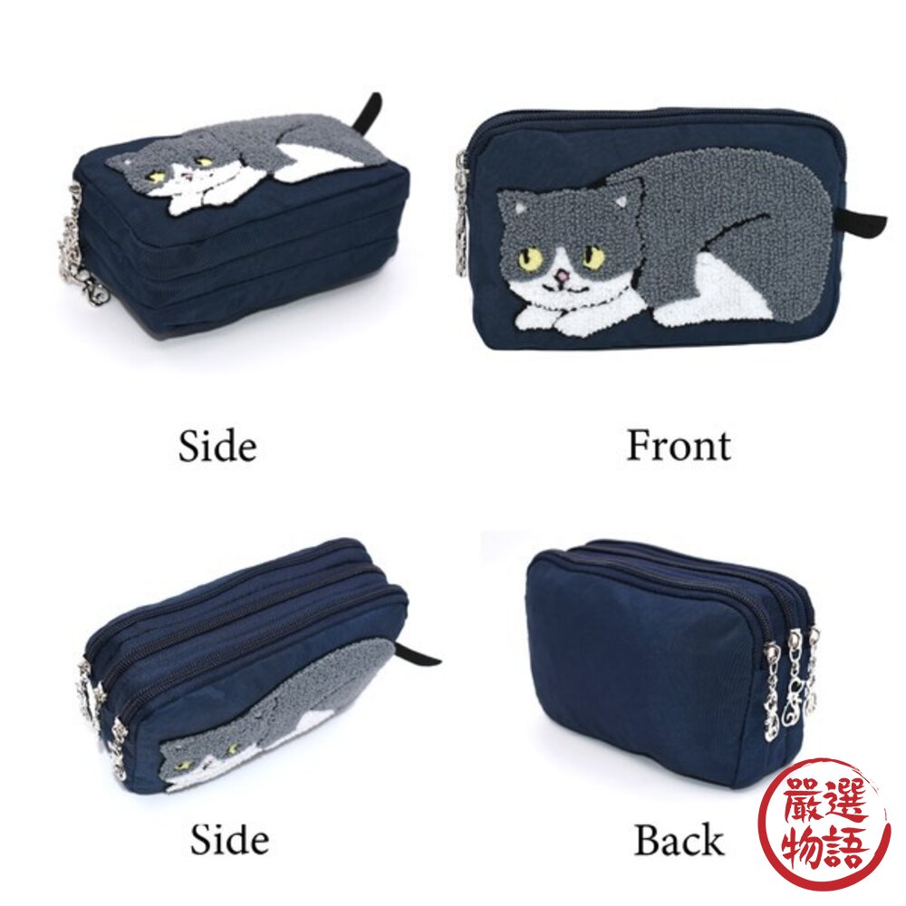✨日本貓咪刺繡三層拉鍊包|多功能分隔設計 大容量實用收納✨