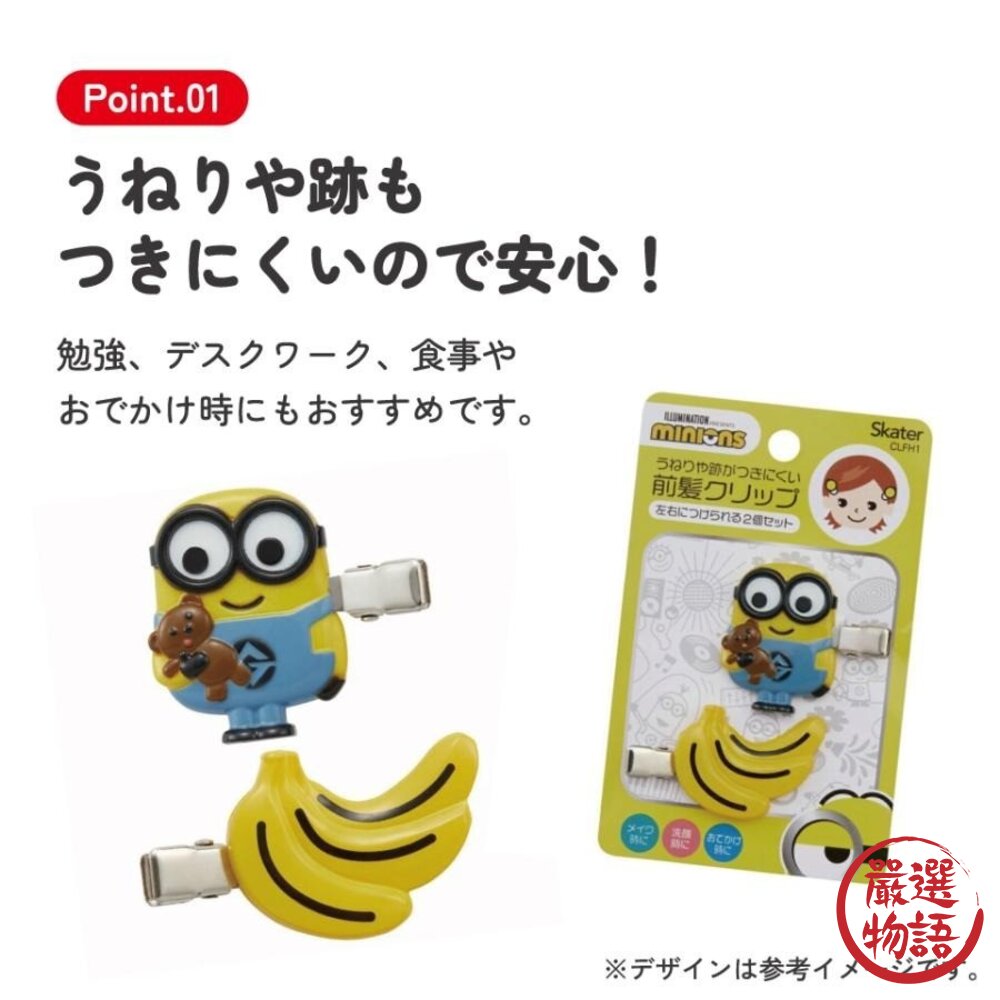 商品名稱:迪士尼髮夾2入組 日本 Skater 瀏海救星 | 三眼怪 小小兵 米妮 瀏海髮夾 前髮夾 髮飾
