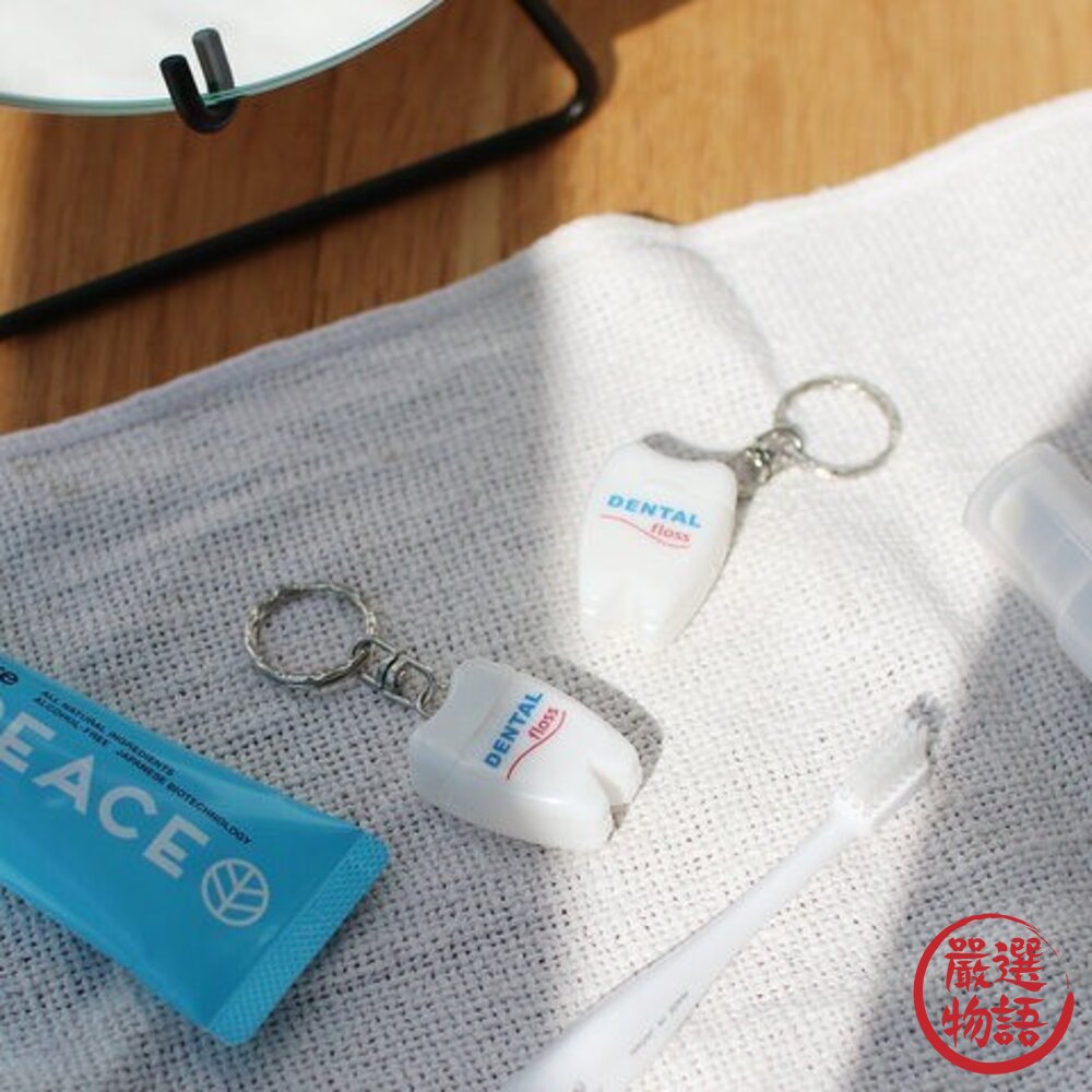 攜帶式牙線盒鑰匙圈|牙線盒|隨身清潔|可愛牙齒造型|實用小禮物