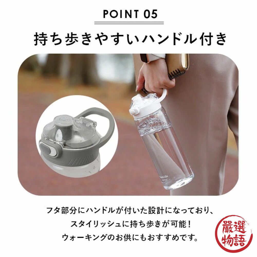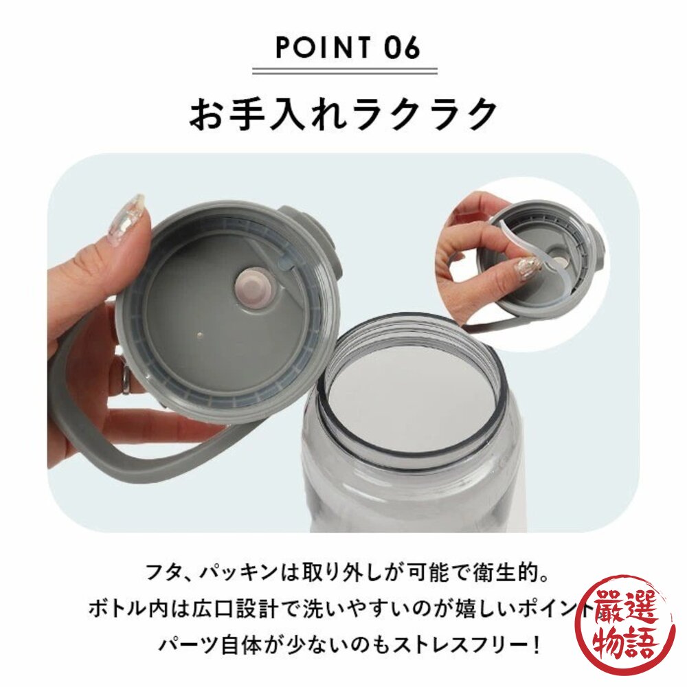 主體採用輕盈耐用的Tritan材質。高透明性,剩餘水量一目了然。從日常使用到戶外活動、運動,用途廣泛。