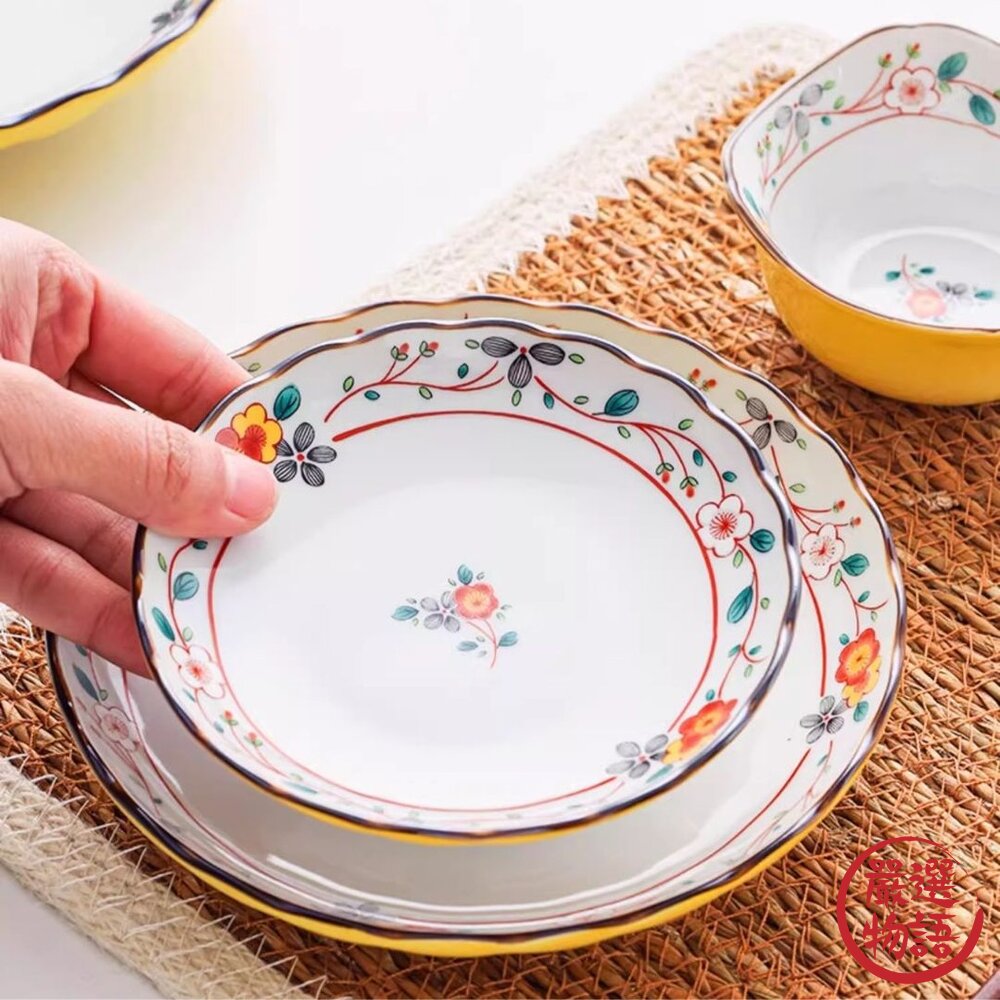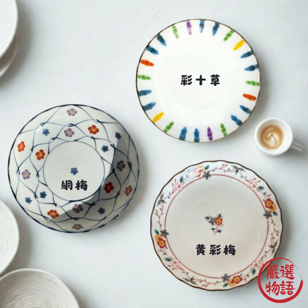 商品名稱:日本 美濃燒 吾山窯 彩十草 梅花 吉祥紋6吋盤 | 宮廷 中國風 圓盤 分菜盤 點心盤 甜點碗 吉祥紋