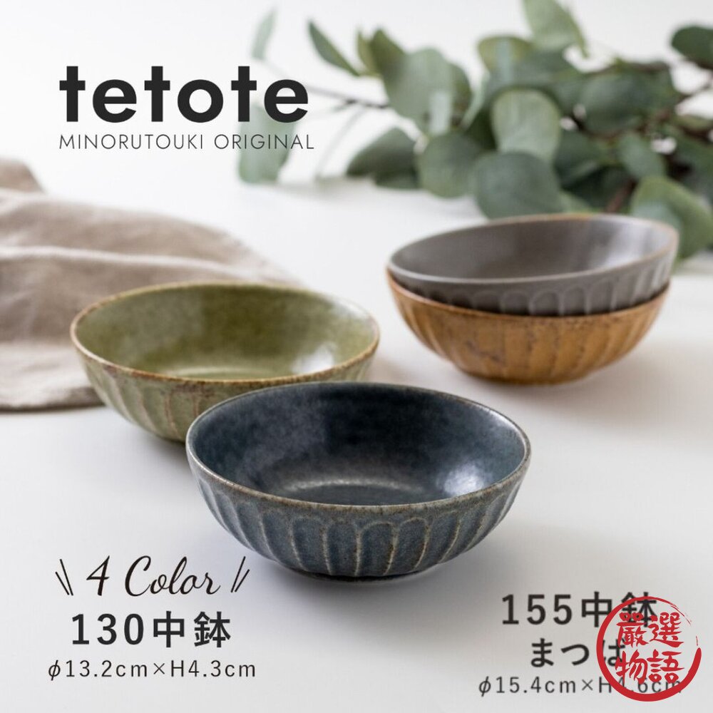 商品名稱:日本製 美濃燒 tetote 寬口碗 13cm/15.5cm|湯碗 小菜碗 深碗 陶瓷碗 中缽 窯燒紋理