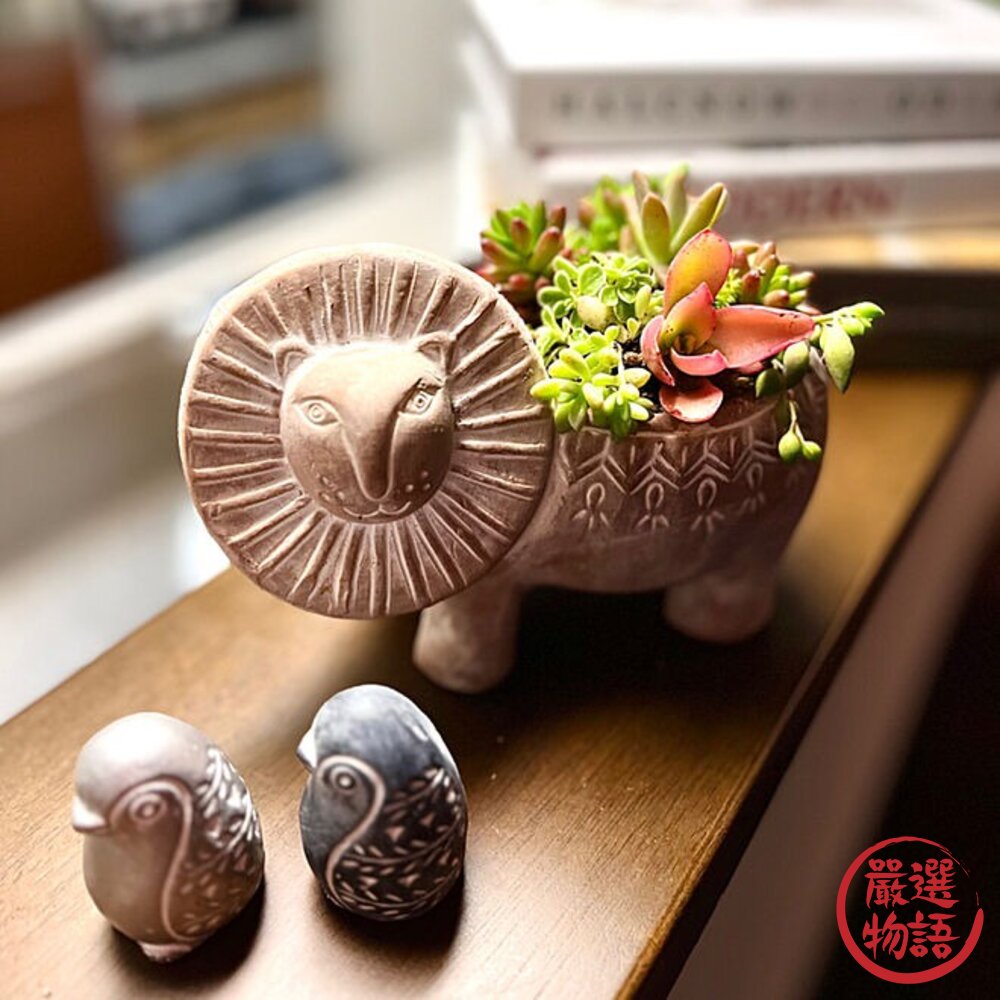商品名稱:日本 People Tree 獅子 陶瓷盆栽 陶瓷花盆 造型花盆|多肉盆栽 多肉花盆 花器 花盆 花架 日本進口