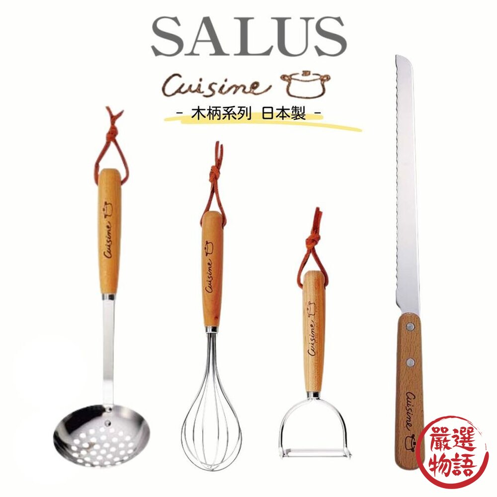 日本製|SALUS|佐藤金屬|Cuisine|木柄系列|日本燕三條|餐具|廚房餐具|麵包刀|打蛋器|削皮刀|漏杓