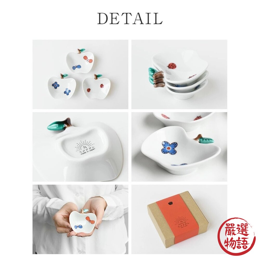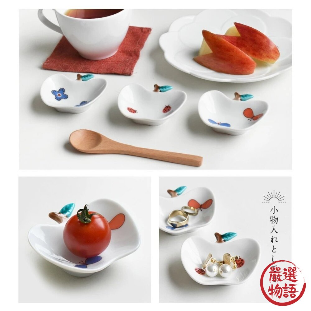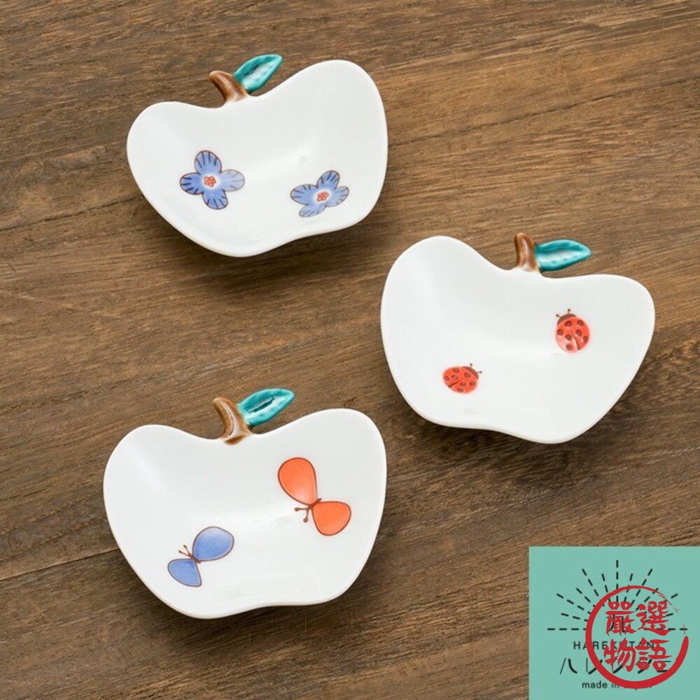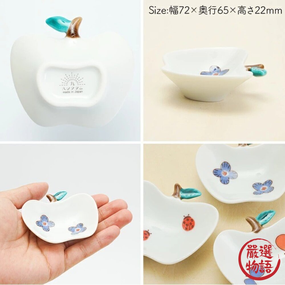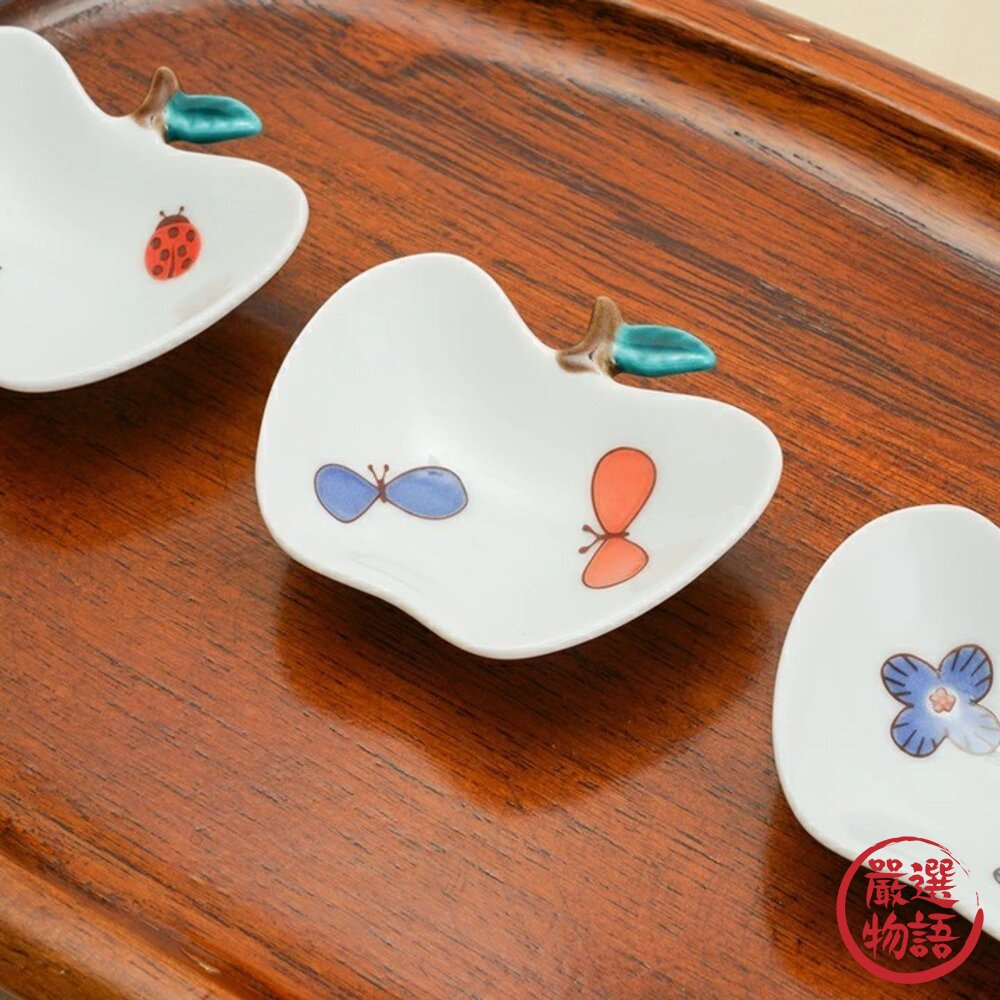 商品名稱:日本製 九谷燒蘋果造型彩繪小盤子 9cm | 可愛盤子 小碟子 醬料碟 醬油 甜點盤 花朵 瓢蟲 蝴蝶 小盤