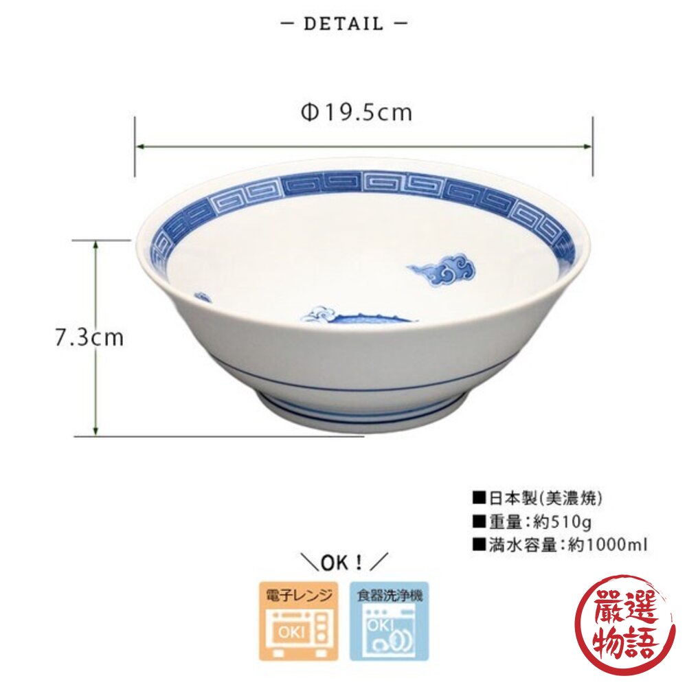 商品名稱:日本製美濃燒 青龍中華拉麵碗 1000ml 2入組 | 美濃燒 拉麵碗 湯碗 陶瓷碗公 大湯碗 碗公