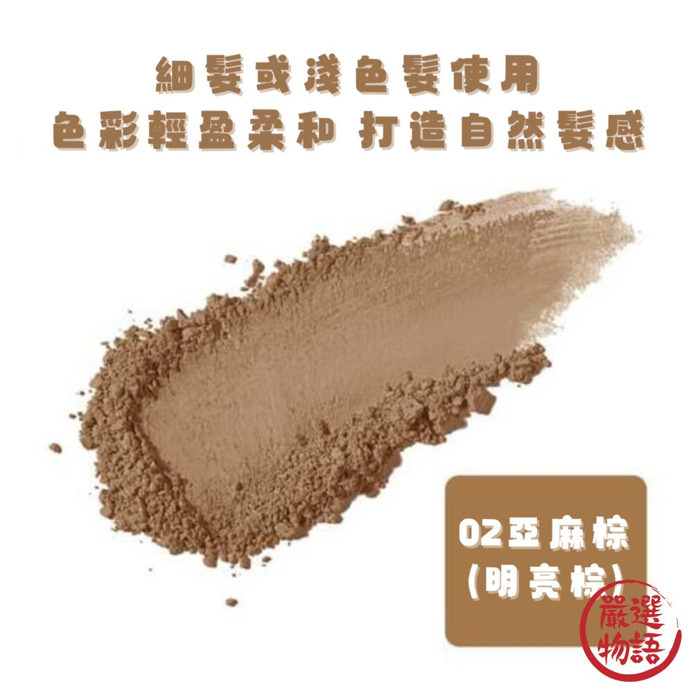 02亞麻棕(明亮棕):細髮或淺色髮使用,色彩輕盈柔和,打造自然髮感